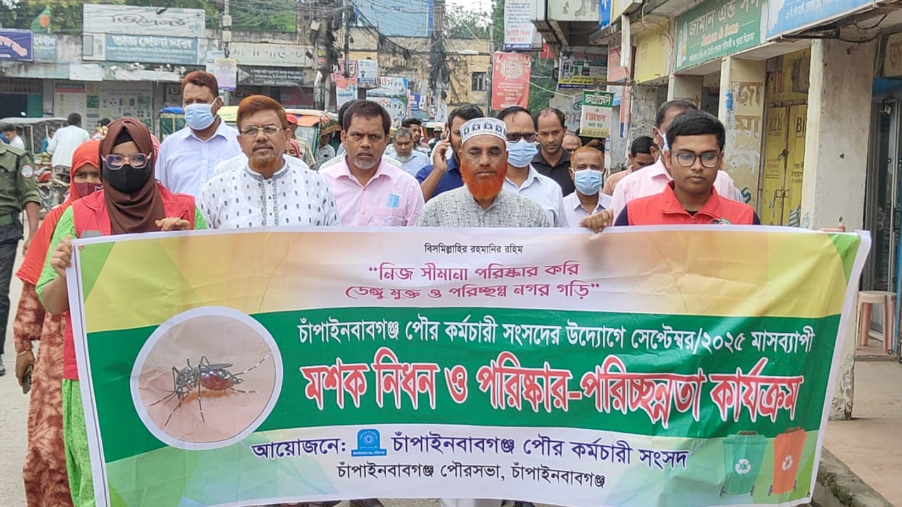 চাঁপাইনবাবগঞ্জ পৌরসভায় মাসব্যাপী মশক নিধন ও পরিষ্কার -পরিচ্ছন্নতা কর্মসূচি