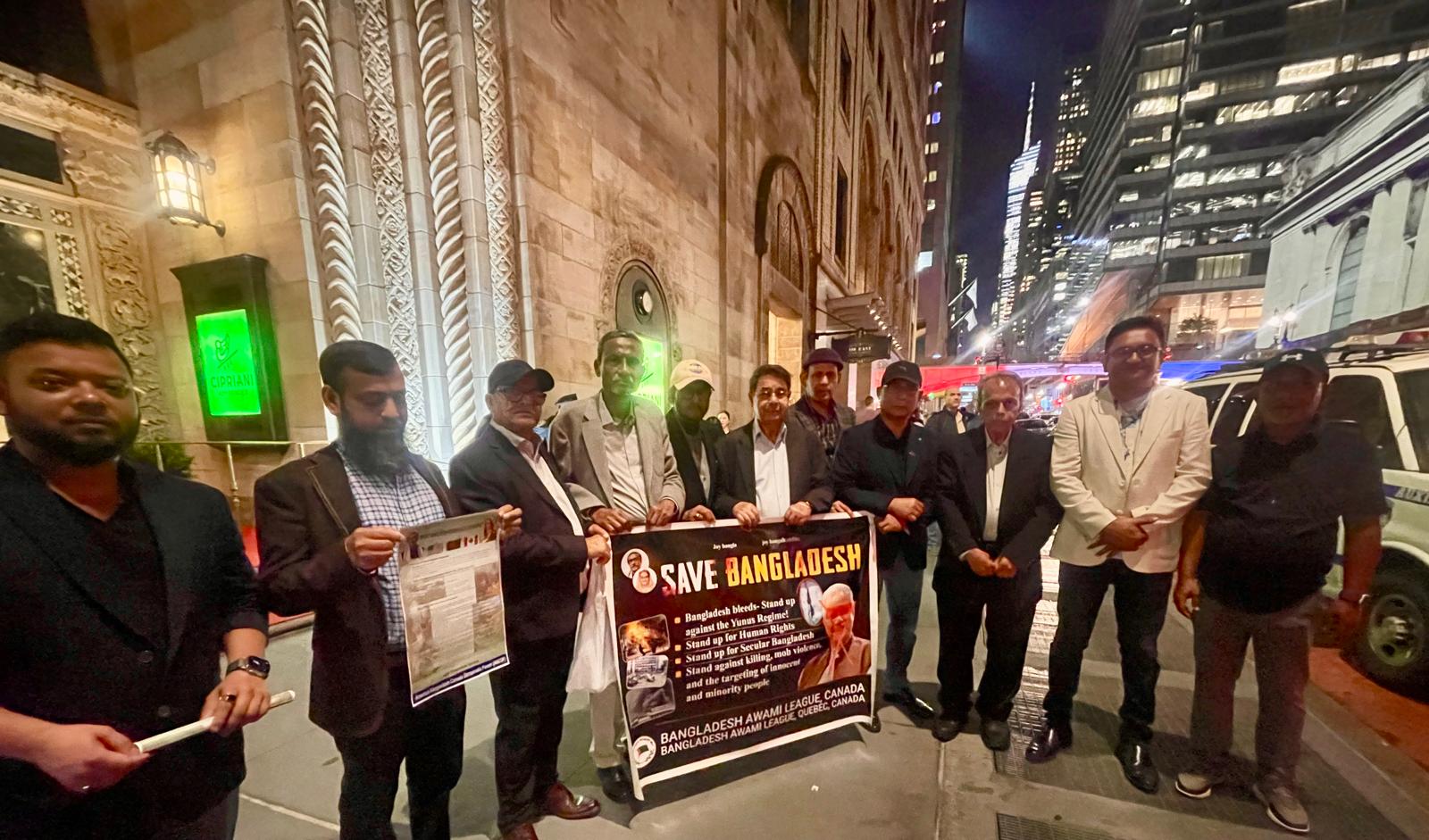 অবৈধ ড. ইউনূসের পদত্যাগের দাবিতে নিউইয়র্কে হোটেলের সামনে কানাডা আওয়ামী লীগের বিক্ষোভ
