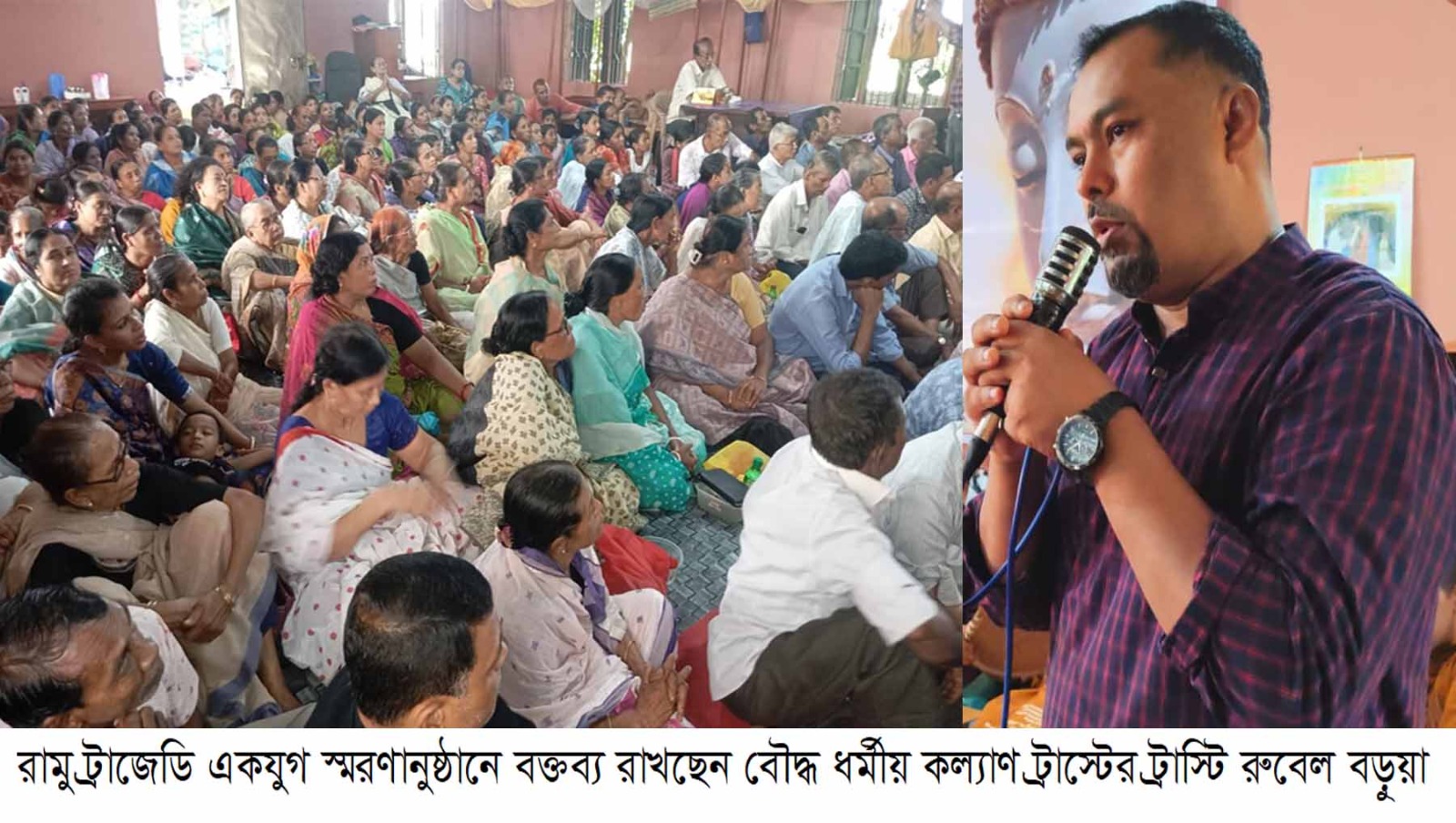 ২৯ সেপ্টেম্বর রামু ট্রাজেডি স্মরণ করে রুবেল বড়ুয়া বলেন, বাংলাদেশ সাম্প্রদায়িক সম্প্রীতির দেশ। বিশ্বশান্তির নীতি অনুশীলন হয় বৌদ্ধ বিহারগুলোতে। ২০১২ সালে রামু ট্রাজেডির ঘটনা পরবর্তী মাদার অব ডেমোক্রেসি বেগম খালেদা জিয়াকে নিয়ে আমরা গিয়েছিলাম এবং রামু, উখিয়া, পটিয়া সহ বিহারগুলোতে আর্থিক সহায়তা দিয়েছি। আজ এ ঘটনার একযুগ পেরিয়ে গেলেও কেন জানিনা তার কোন সুরাহা বিগত সরকারের আমলে করা সম্ভব হয়নি। এ বাংলাদেশ হিন্দু, বৌদ্ধ, খ্রিস্টান ও মুসলিম সম্প্রদায়ের। সকলের সাম্প্রদায়িক সম্প্রীতির মেলবন্ধনের এ দেশ গঠিত। আগামী নির্বাচনকে সামনে রেখে আপনাদেরকে বলতে পারি, দেশনায়ক তারেক রহমানকে সরকার গঠনের জন্য যার যার এলাকায় ভোট দিয়ে জয়যাত্রায় সামিল হবেন। একমাত্র তারেক রহমানের হাতে এ দেশ নিরাপদ। আগামী প্রবারণা পূর্ণিমা হবে, ‘সম্প্রীতিতে শান্তির আলো।’ এ স্লোগান দিয়ে আমরা দেশব্যাপী এগিয়ে যাব। বিশ্বশান্তি কামনায় প্রার্থনা করছি।