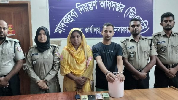 গোমস্তাপুরে যৌথবাহিনীর অভিযানে মাদকসহ স্বামী-স্ত্রী আটক চাঁপাইনবাবগঞ্জের গোমস্তাপুর উপজেলার রহনপুর কেডিসি পাড়ায় যৌথ অভিযানে স্বামী-স্ত্রীকে আটক করেছে মাদকদ্রব্য নিয়ন্ত্রণ অধিদপ্তর (ডিএনসি)। এসময় তাদের কাছ থেকে ৮৮ পিস ইয়াবা, ৩৮ গ্রাম