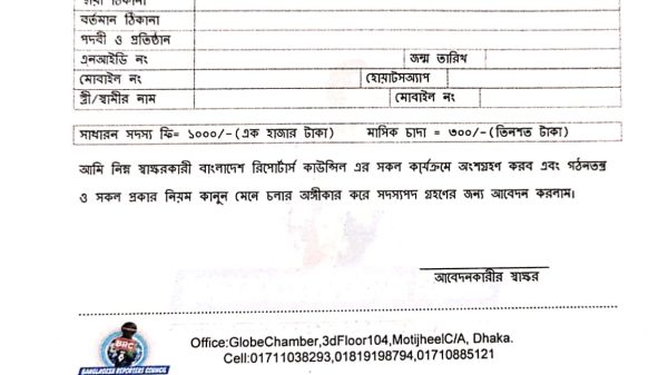 নোটিশ নং- ০৫ তারিখ ০২/১০/২৫ বাংলাদেশ রিপোর্টার্স কাউন্সিল এর এই হোয়াটসঅ্যাপ গ্রুপের সকল সদস্যদের জ্ঞ্যাতার্থে জানানো যাচ্ছে যে অতি স্বল্প সময়ের মধ্যে সংগঠনের নিবন্ধনের জন্য যথাযথ নিবন্ধন কর্তৃপক্ষের নিকট আবেদন ...বিস্তারিত পড়ুন