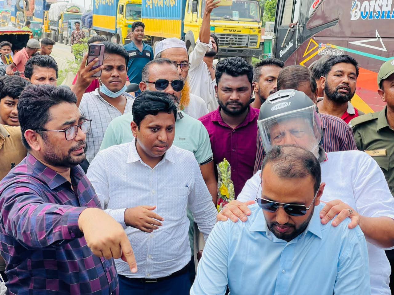 ব্রাহ্মণবাড়িয়া জেলা প্রশাসক মোহাম্মদ দিদারুল আলম, পুলিশ সুপার এহতেশামুল হক, সরাইল উপজেলা নির্বাহী অফিসার (ইউএনও) মো. মোশারফ হোসাইন, হাইওয়ে পুলিশ সুপার শাহীনুর আলম, সরাইল থানার ওসি মোহাম্মদ মোরশেদুল আলম চৌধুরী, সরাইল ইউপি চেয়ারম্যান আব্দুল জব্বারসহ সড়ক ও জনপথের কর্মকর্তারা উপদেষ্টার সঙ্গে ছিলেন।