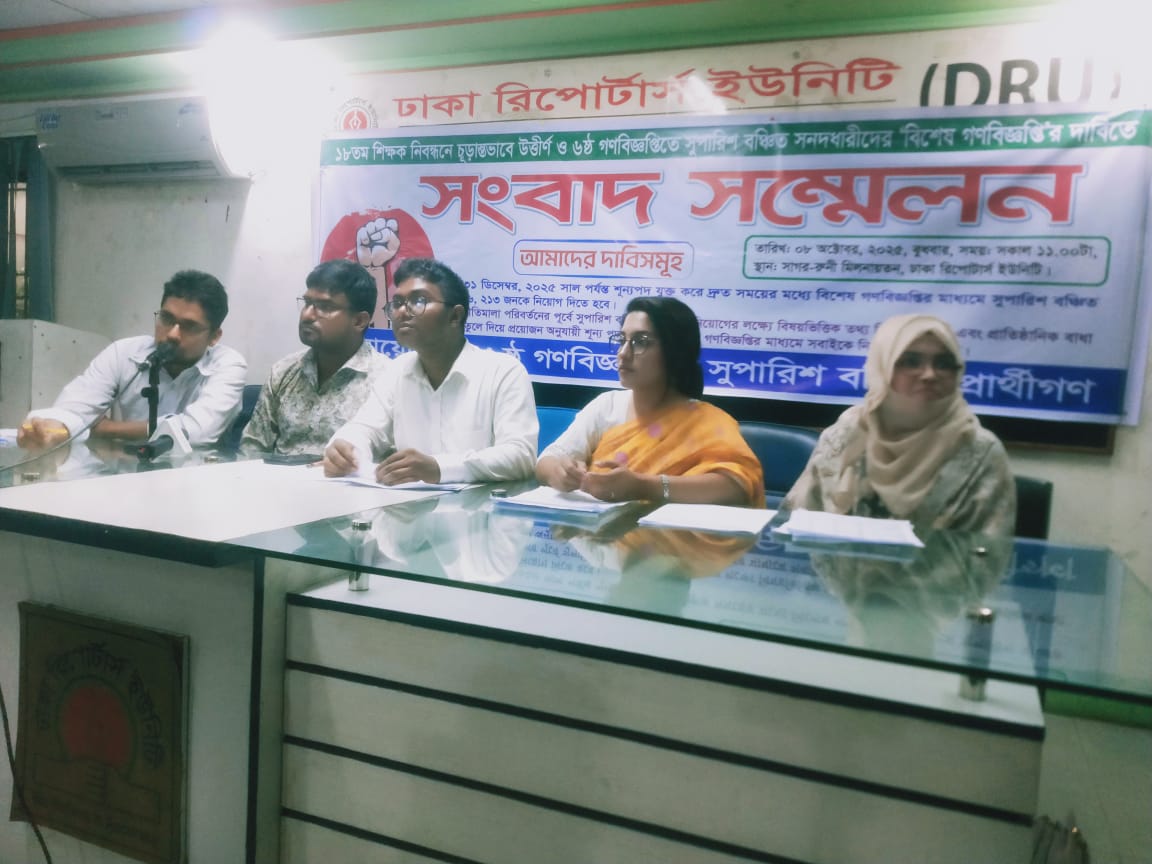 ১৮তম শিক্ষক নিবন্ধনে চুড়ান্তভাবে উত্তীর্ণ,সুপারিশ বঞ্চিত ১৬,২১৩ জনকে দ্রুত নিয়োগের দাবি — সংবাদ সম্মেলনে মানবিক আবেদন।