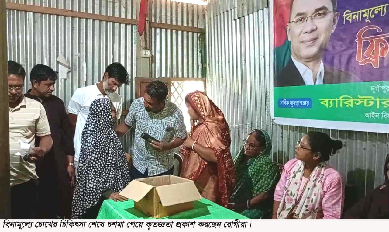 কেন্দ্রীয় বিএনপির আইন বিষয়ক সম্পাদক ব্যারিস্টার কায়সার কামালের অর্থায়নে দুর্গাপুর উপজেলার বিভিন্ন ইউনিয়নের ৪৫০জন নারী-পুরুষকে ১১তম ধাপে ময়মনসিংহের বিএনএসবি হাসপাতালে চোখের অপারেশন করা হয়। পরবর্তীতে চিকিৎসকগণ ওই রোগীদের ফলোআপ করেন এসময় ১২৮জন রোগীর জন্য চশমা সহ প্রয়োাজনীয় সামগ্রী বিতরণ করা হয়। পরবির্ততে অন্যান্য রোগীদের চশমা গুলো, দলীয় নেতাকর্মীরা বাড়ি বাড়ি গিয়ে পৌঁছে দেন। এরই ধারাবাহিকতায় আজ সর্বশেষ ৫৬ জন রোগীকে চশমা বিতরণ করা হয়।