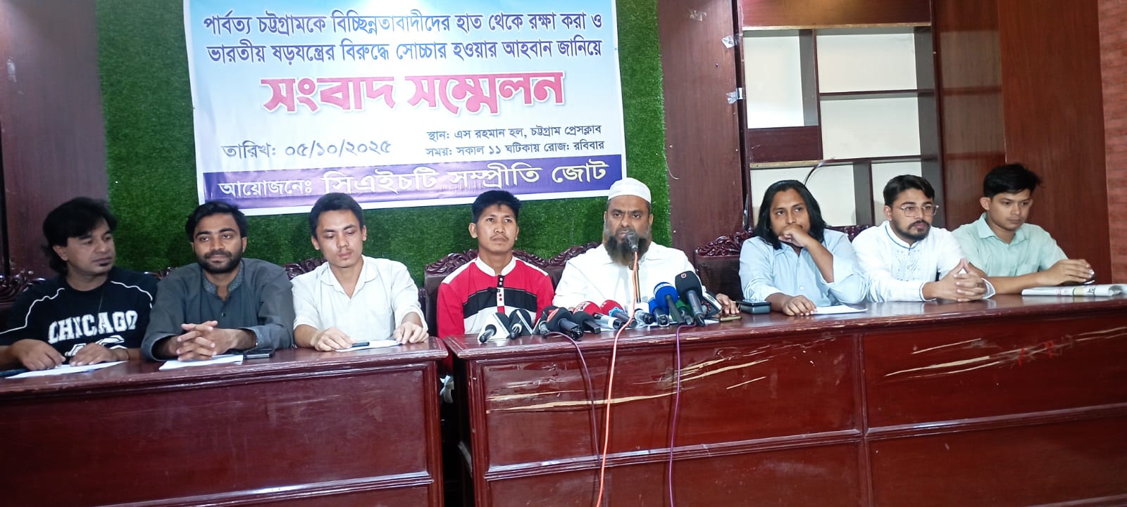 পার্বত্য চট্টগ্রামকে বিচ্ছিন্নতাবাদী ও ভারতের ষড়যন্ত্র থেকে রক্ষার আহবান জানিয়ে সংবাদ সম্মেলন করেছে সিএইচটি সম্প্রীতি জোট। আজ রবিবার সকাল ১১ ঘটিকায় চট্টগ্রাম প্রেসক্লাবে এস রহমান হলে এটি অনুষ্ঠিত হয়। সংবাদ সম্মেলনে লিখিত বক্তব্যে ইঞ্জিনিয়ার থোয়াই চিং মং শাক বলেন,