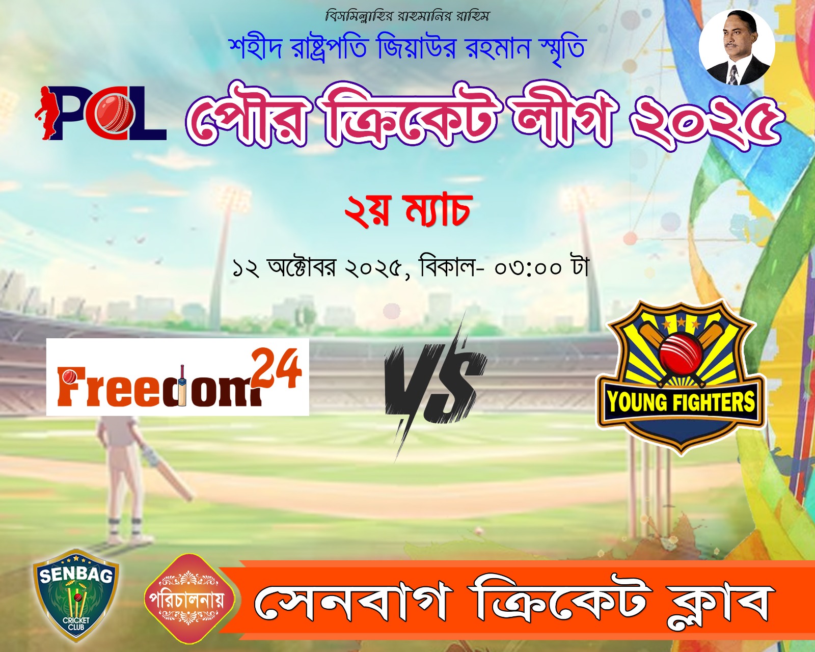 সেনবাগে পিসিএল ২০২৫ এর রোমাঞ্চকর সূচনা : ২য় ম্যাচে মাঠ কাঁপাতে আসছে ফ্রিডম ২৪ বনাম ইয়াং ফাইটার্স