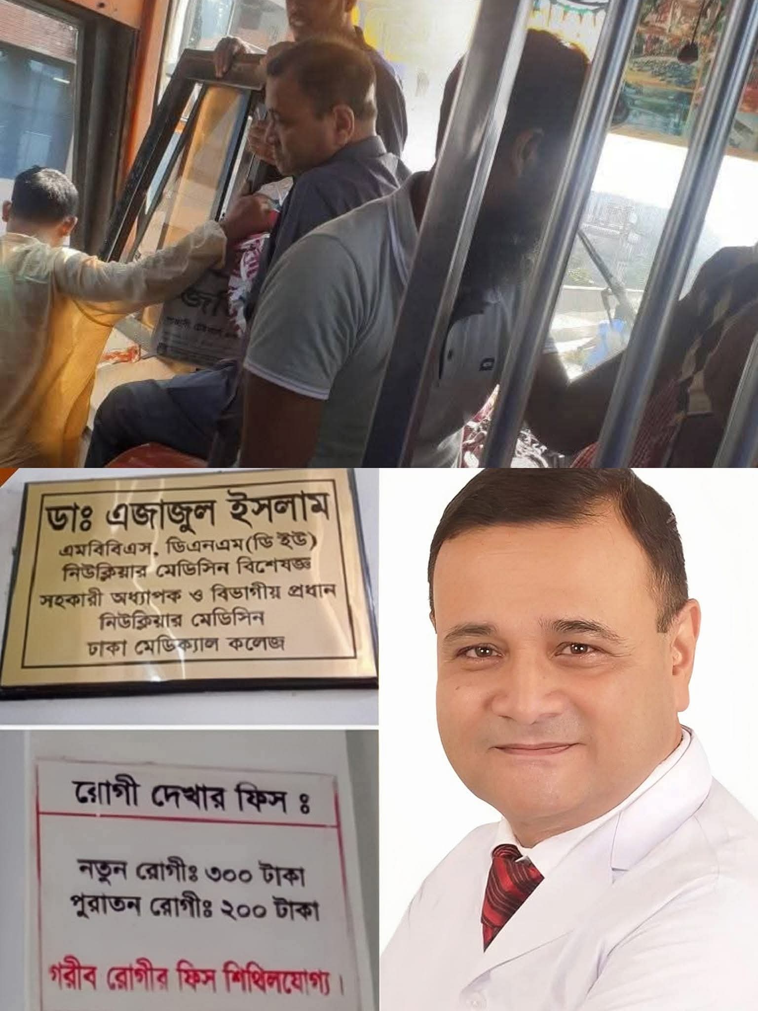 গাজীপুর চৌরাস্তা থেকে ডা: এজাজুল ইসলাম বাসে ওঠেন।এর আগে উনার সম্পর্কে অনেক পজিটিভ কথা শুনেছি। আজ নিজ চোখে দেখলাম উনার সাধারণ চলাফেরা।সিট না পেয়ে ড্রাইভারের সাথের বসার জায়গায় বসছিলেন আমি আমার সিট ছেড়ে উনাকে বসতে বললাম উনি বসলেন না ওখানেই বসলেন।বাসে আরো অনেকেই উনার সম্মানে সিট ছেড়ে উনাকে বসতে বললেও উনি ওখানেই বসলেন বরং আমার সাথের সিট খালি হওয়ায় আবারো উনাকে ডাকলাম উনি উনার পাশের আরেকজনকে বসতে বললেন।বর্তমানে হাসপাতাল বা রাস্তায় ডাক্তারের সাথে হাটা বা কথা বলা অথবা বসা অকল্পনীয় অথচ উনি এত বড় ডাক্তার গুনি অভিনেতা হয়েও এত সাধারণ চলাফেরা বাসের সবাইকে বিমহিত করেছে।আসলে সত্যিই উনি গরিবের ডাক্তার।