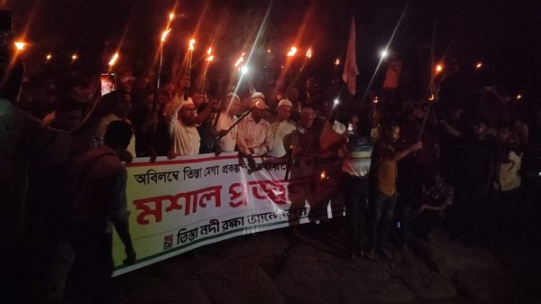 তিস্তা বাঁচাতে হাজারো মানুষের মশাল প্রজ্জ্বলন তিস্তার পানির ন্যায্য হিস্যা আদায়, ভাঙন থেকে তীরবর্তী বসতি ও কৃষিজমি রক্ষাসহ তিস্তা মহাপরিকল্পনা দ্রুত বাস্তবায়নের দাবিতে নদী তীরে মশাল প্রজ্জ্বলন করে ‘জাগো বাহে, ...বিস্তারিত পড়ুন