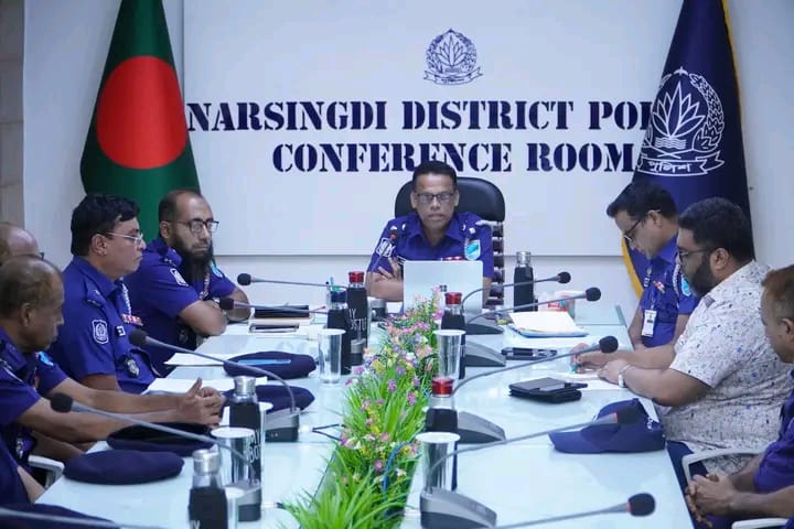 On Saturday (October 18, 2025) after visiting the Narsingdi Sadar Court, Superintendent of Police, Narsingdi Mr. Md. Menhajul Alam, PPM exchanged views with the policemen working in the court at the police office conference room.