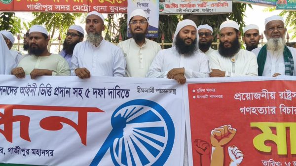 Islami Andolan Bangladesh Gazipur metropolis is doing human chain for 5 point demands including implementation of July charter and peer system elections. In front of DC office Md. Kajal Human ...বিস্তারিত পড়ুন