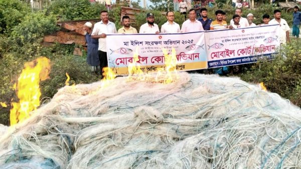 Millions of meters of current nets were burnt and destroyed in Lakshmipur raid Dalim Kumar Das Titu District Fisheries Officer Aminul Islam is conducting a 22-day campaign in the Meghna ...বিস্তারিত পড়ুন