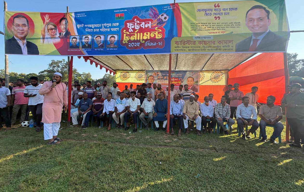 Aiming to create a drug-free society, a football tournament has been inaugurated in memory of the four martyrs from Durgapur upazila of Netrakona in the July uprising. Upazila BNP organizing secretary Jamal Uddin Master inaugurated the game at Birishiri GBC ground on Monday (October 20) afternoon.