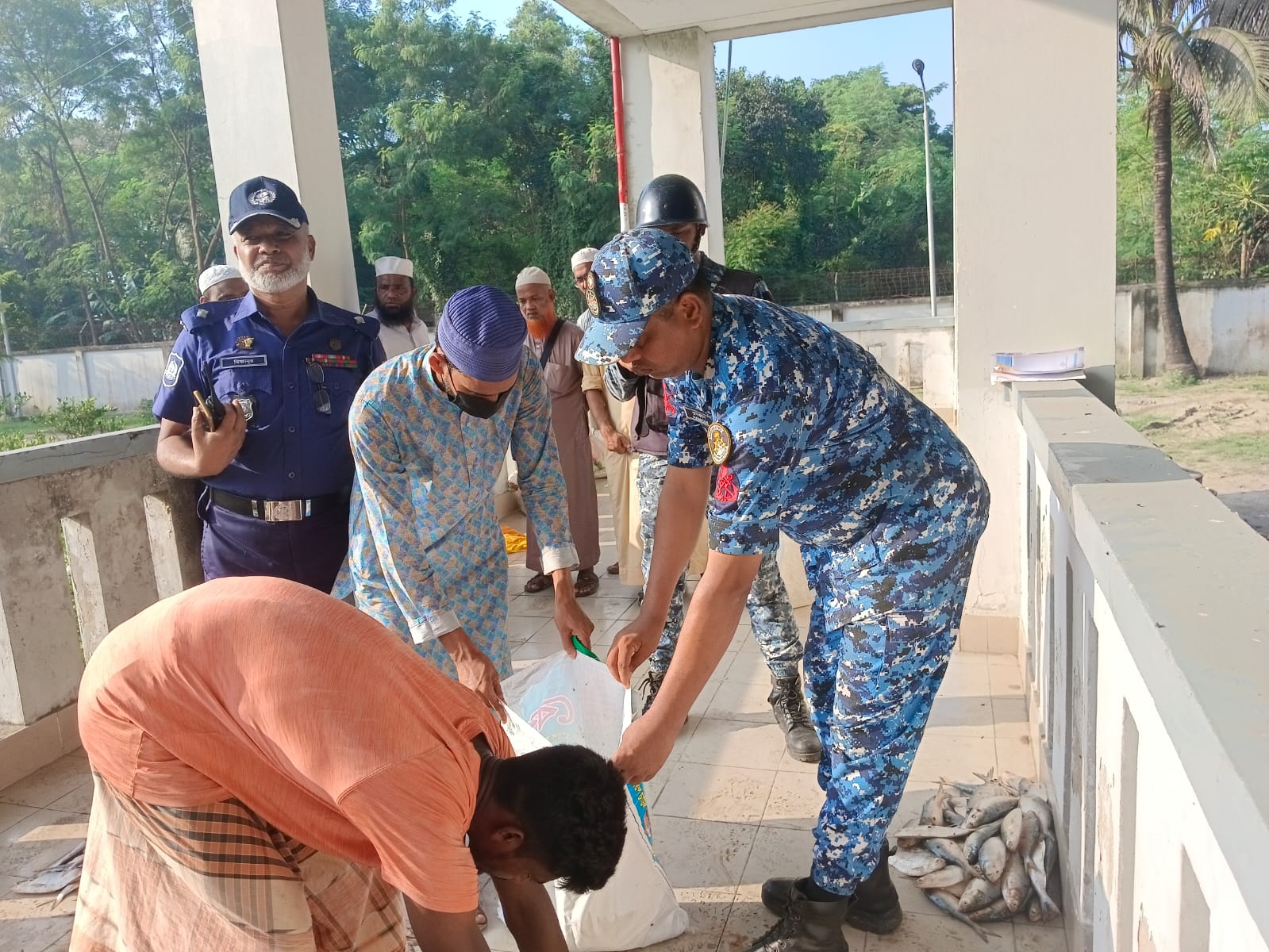 On 22.10.25 under the leadership of officer-in-charge, Sadarghat Naval Police Station, Mr. Mizanur Rahman, along with the Coast Guard, 525 kg of hilsa fish were recovered in an abandoned condition in Patenga ghat number 15 area. Later fish were distributed to different Madrasas under the direction and presence of the Fisheries Officer.