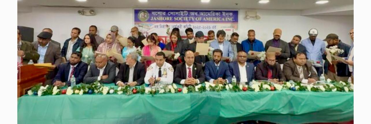 The inauguration of the newly elected Executive Committee 2025-2026 of Jessore Society of America was organized on October 11, Saturday, at Navanna Party Center in Jackson Heights, New York.Attorney Moin Chowdhury. Besides, Deputy Inspector Karam Chowdhury, Captain Abbas, former General Secretary of Bangladesh Society Ruhul Amin Siddiqui, General Secretary of United States Jatiya Party Abu Taleb Chowdhury Chandu, President of Khalil Biryani Khalilur Rahman along with prominent community leaders and various socio-cultural people including expatriates of Jessore were present among the guests. Khabar Ibn News.