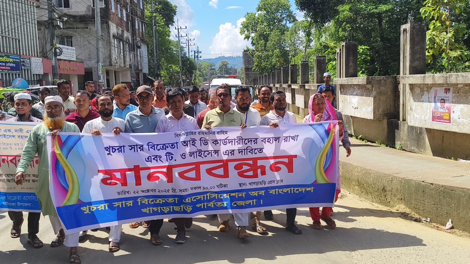 Retail Fertilizer Dealers Association of Bangladesh, Khagrachari Hill District Branch has organized a human chain demanding the retention of ID card holders and issuance of TO license.
