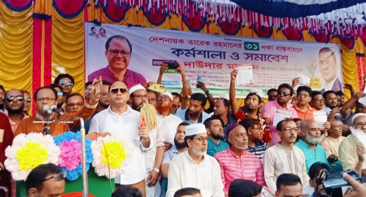 Daudar Mahmud said, Tariq Rahman’s 31 points have not reached many of our mothers and sisters. That’s why today’s gathering is to tell my mother and sisters. From the day people understood these 31 points, it became a demand of people. 31 points are a symbol of hope of common people. Tariq Rahman’s 31 points are the dream of future Bangladesh. We will work for the leader of the country, Tarek Rahman, who will hand over the grain of rice.He also said, I was in agitation and struggle on the streets for 17 years. I did not miss a single program of the party. While distributing Tarek Rahman’s leaflets, I was beaten by the police, I was sued, but I did not leave the streets. I did not leave the party, I did not compromise with anyone. If I wanted, I could spend these 17 years comfortably. But I did not do that dishonesty with the party and my own integrity. Alhamdulillah, Awami League leaders in Singra for BNP’s green signalposted Upazila Awami League office has been locked. So in the future, you will think about the hand of the grain of rice.