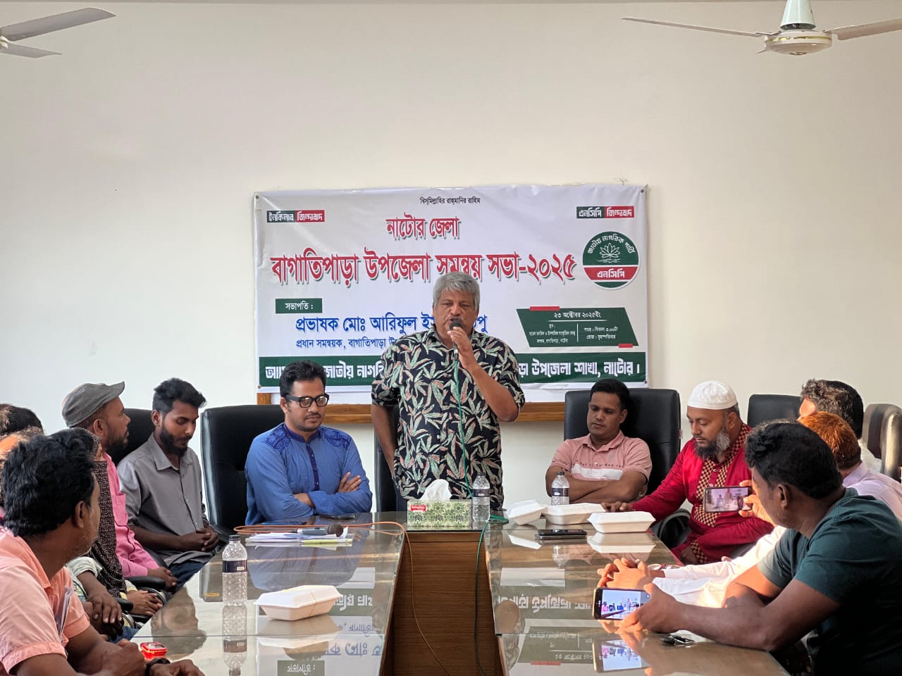 A coordination meeting and doa mahfil was held at the initiative of Jatiya Nagrik Party (NCP) upazila branch in Bagatipara of Natore. The meeting was held on Thursday (October 23) around 3:30 pm in the conference room of Bagatipara Model Mosque and Islamic Cultural Centre.