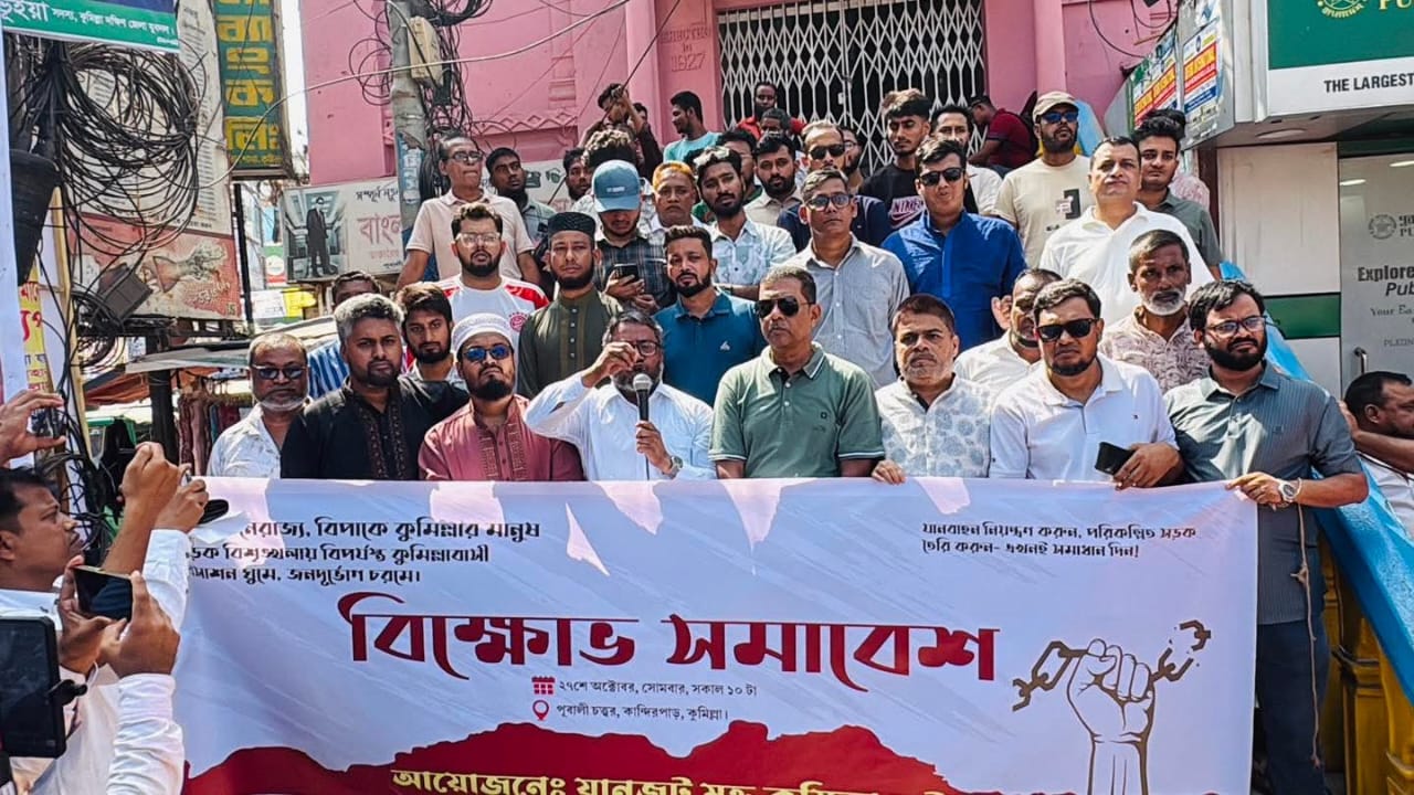 A social organization called ‘Janjot Mukt Comilla Chai’ has held a protest rally demanding the elimination of traffic jams and an end to chaos on the roads in Comilla city. The rally was held on Monday (October 27) at 10:30 am at Kandirpar Pubali Chattar.