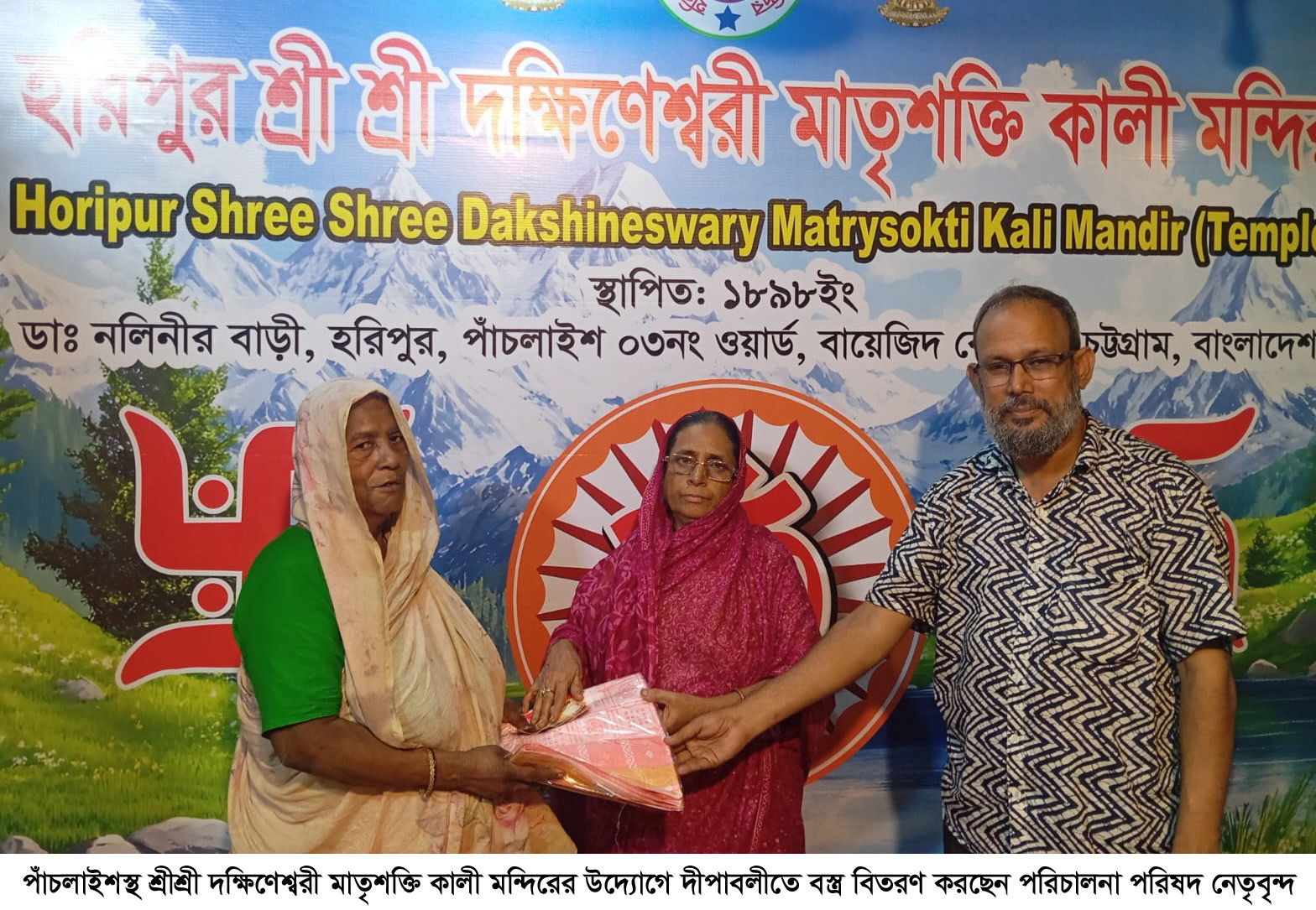 Dr. Panchlaish Haripur of the city. On the occasion of Diwali on Friday, October 24, clothes were distributed among the poor families of the area under the initiative of Nalini’s home Haripur Sri Sri Dakshineshwari Matrashakti Kali Mandir. Sevayat Pandit Arup Acharya presided over the cloth distribution ceremony.