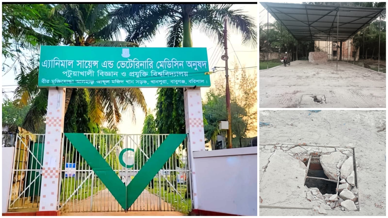 In Patuakhali Varsity, newly constructed bus-shed cracks before inauguration: Quality of work questioned.