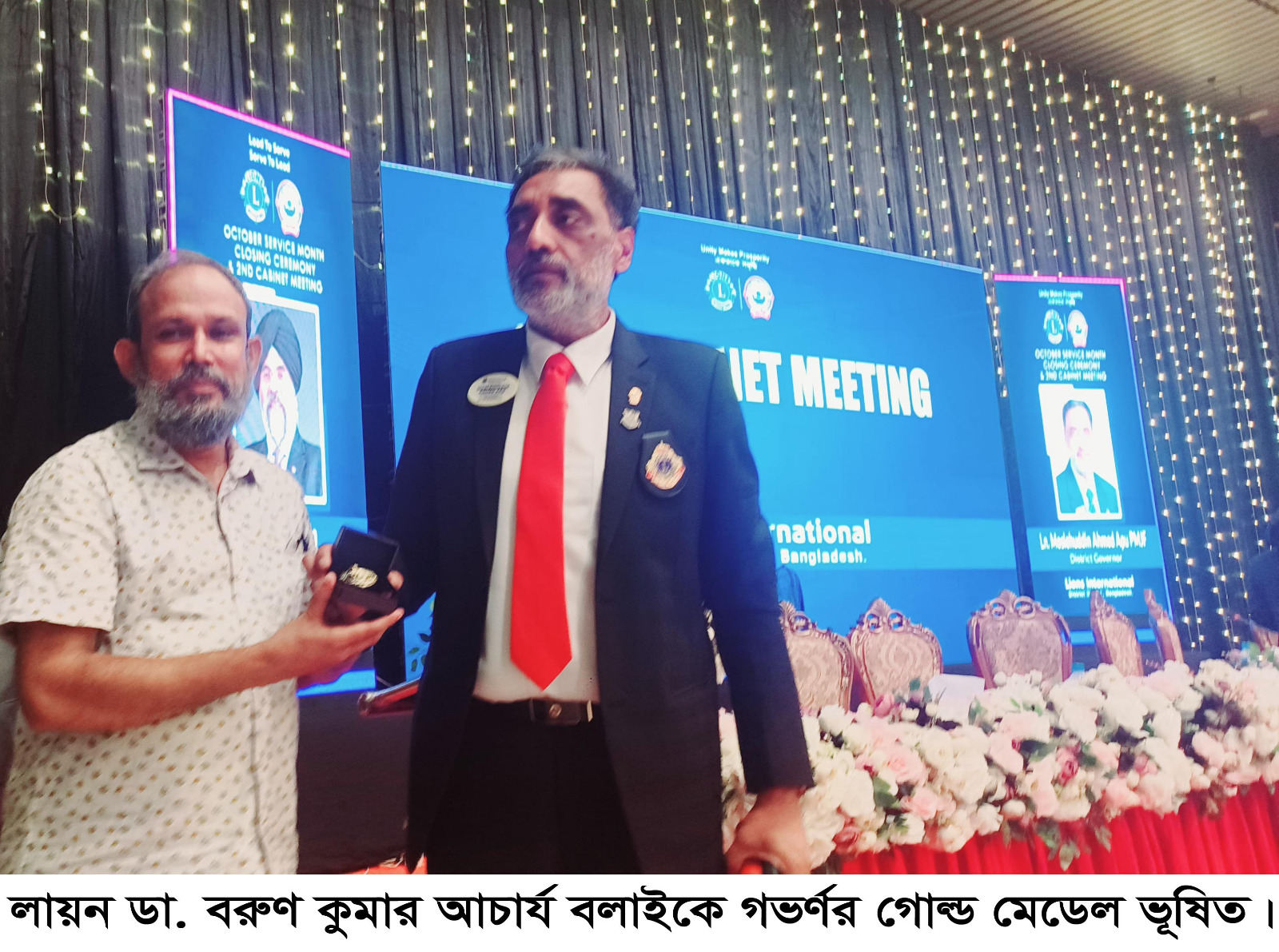 Lions Club of Chittagong Fatikchari club and club president Lion Dr. at the closing Shiromani Governor Gold Award ceremony of Lions Club Chittagong District October Service and 2nd Cabinet Meeting at the International Convention Hall in Kazir Deuristh of the city last November 1 at 5 pm. Varun Kumar Acharya Balai was awarded the Governor’s Gold Medal Award.Honorable International Director Lion Nazmul Haque PMJF, PDG was present as the Chief Guest. Special Guest Lion Kazi Saiful Islam, Guest of Honor Lion AKM Rezaul Haque MJF, Lion Ashraf Hossain Khan Hira, District Governor Lion Md. Moslem Uddin Apu, Incoming Fast District Governor Lion Kahinur Kamal MJF, Lion Md. Abu Bakr Siddiqui PMJF, Fast BDG Chairman Lion Md. KamruzzamanLiton MJF, Region Chairperson Lion Nishat Imran MJF.