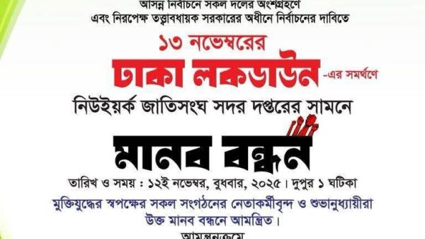 In support of the Dhaka lockdown of November 13, various organizations including the United States League protested in front of the United Nations on Wednesday, November 12 Hakikul Islam Khokon ...বিস্তারিত পড়ুন