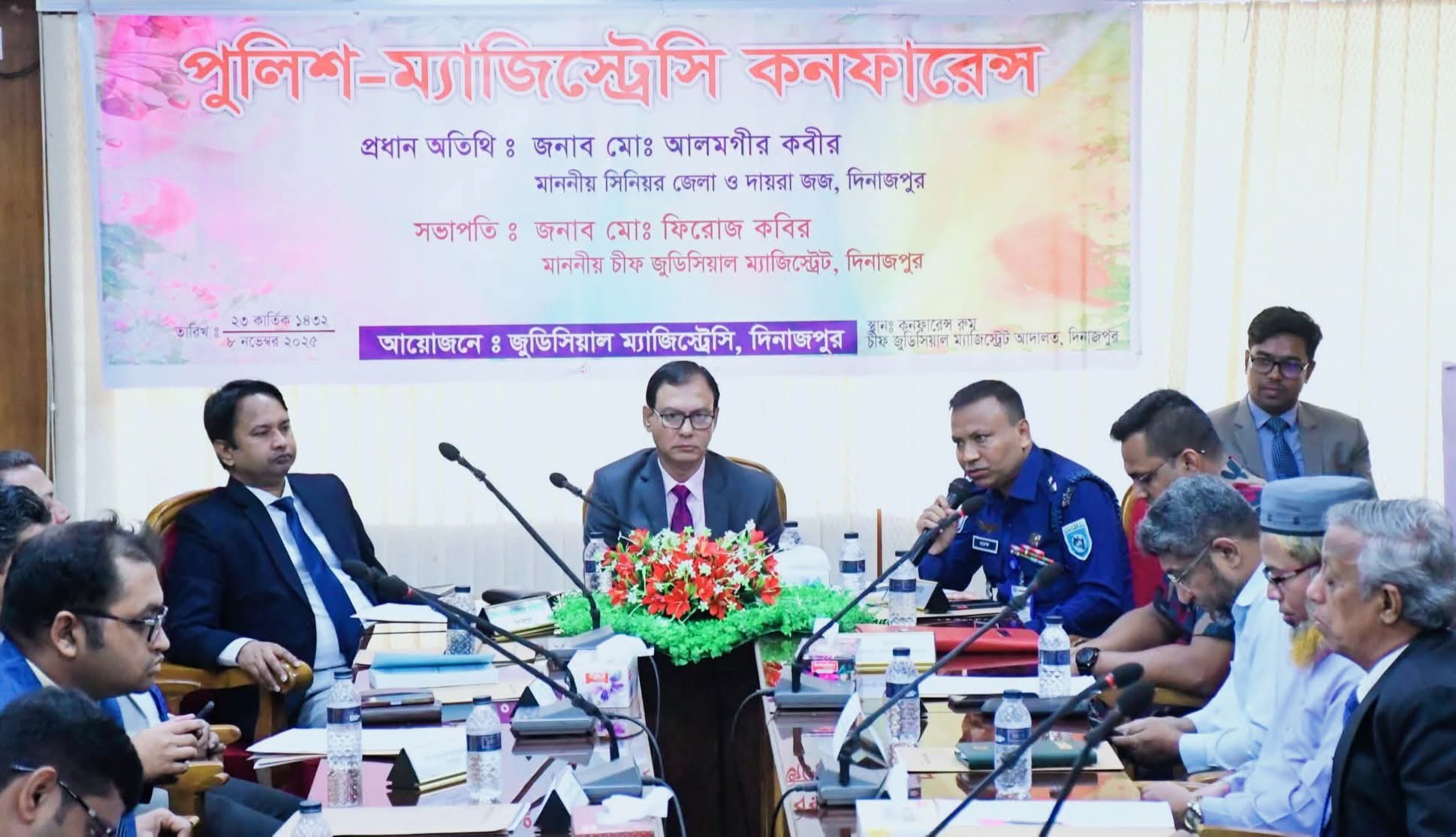 The Police-Magistracy Conference has been completed. On November 8-2025, the Police-Magistracy Conference was completed in the Chief Judicial Magistrate Court Conference Room organized by the Judicial Magistrate of Dinajpur. Hon’ble Senior District and Sessions Judge was present as the chief guest in the meeting. Dinajpur district was present as a special guestSuperintendent of Police Mr. Md. Marufat Hussain.
