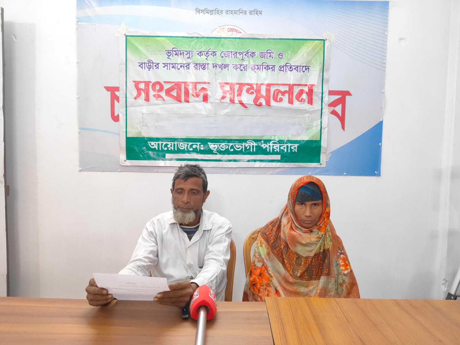 On Tuesday (November 11) at noon, the victim Ashraful Haque read a written statement at a press conference in the hall room of the Chapai Press Club on the second floor of Mandal Market in the district.In the press conference, Ashraful Haque said that the dispute over the land with the defendants in the case has been going on for a long time. Shamsuzjoha, Sajib along with their Bhoomi Dasya Bahini created a dispute over about 2294 acres of land in RS Dag No. 1319, 1347, 1348, 1349 of the mentioned land, and on October 31, 2023, a Batwara case was filed in the court. The other side Shamsujoha and his team got angry. Later they left the house along with Ashraful Haque’s familySpent the day at the house of relatives. They claimed that they filed a case with the police station but the police did not take the case. Later they were forced to file a case in court. The case is still pending in court.