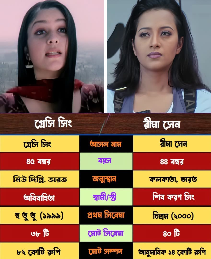ভারতীয় চলচ্চিত্র জগতে গ্রেসি সিং এবং রিমা সেন—এই দুই অভিনেত্রীই ২০০০-এর দশকের প্রথম দিকে নিজেদের স্বতন্ত্র অভিনয় দক্ষতা ও উপস্থিতির জন্য দর্শক মহলে জনপ্রিয়তা লাভ করেন। তাঁদের জনপ্রিয়তার উৎস এবং কর্মজীবনের গতিপথ ছিল লক্ষণীয়ভাবে ভিন্ন।