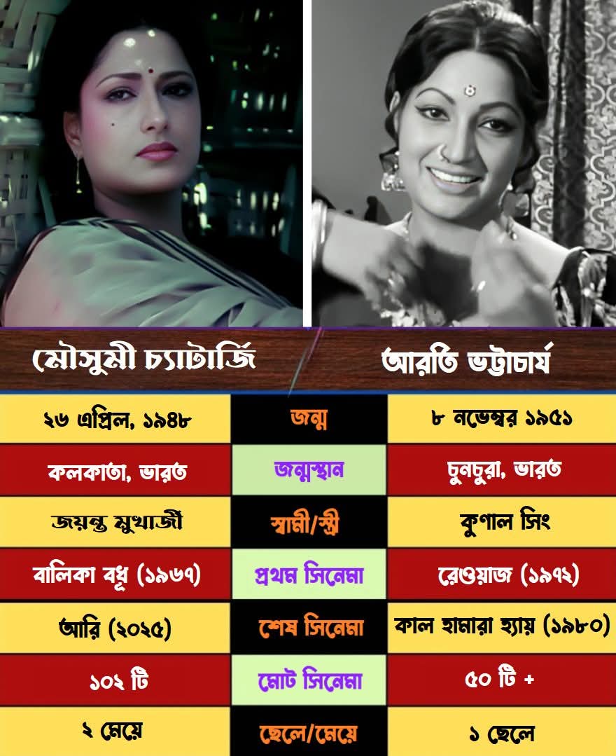 মৌসুমী চ্যাটার্জি ও আরতি ভট্টাচার্য: দুই বাংলার অভিনয়ের ঝলক