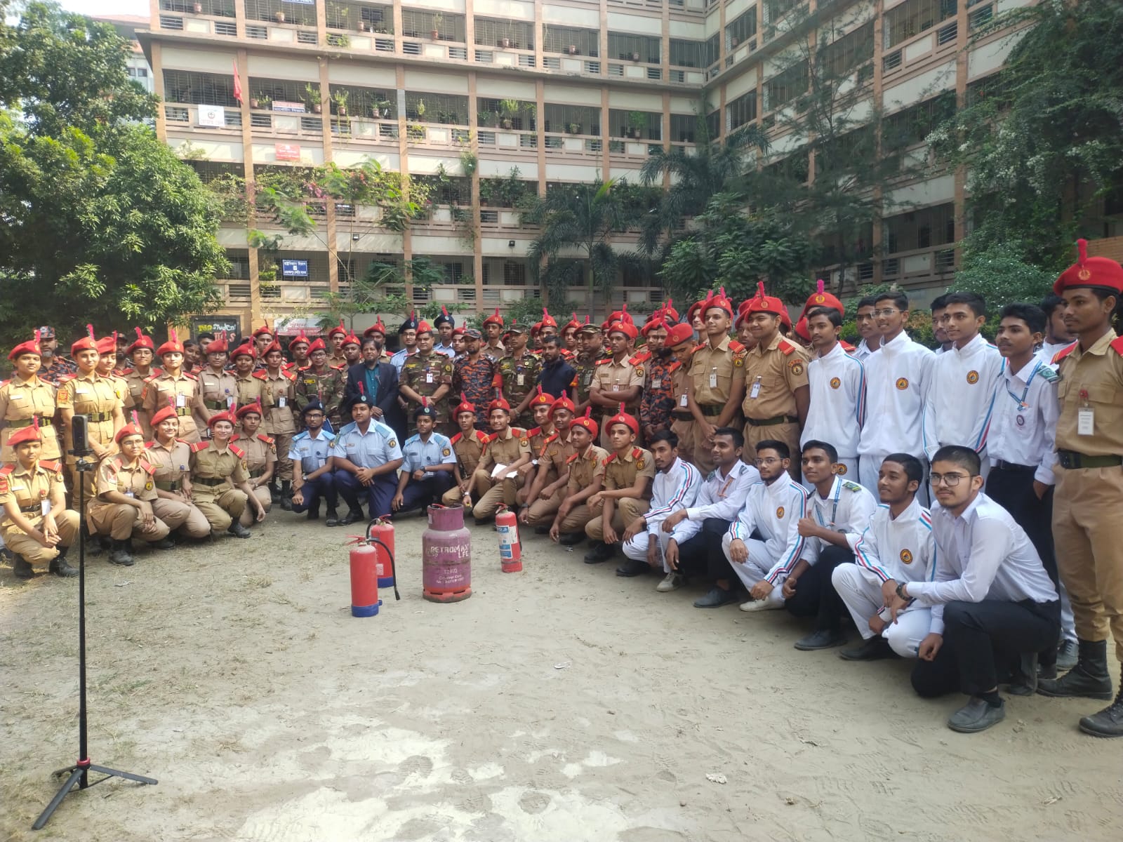 "This time the principal of Mohammadpur Central College Dr. HM Aliullah,Vice Principal Liaquat Ali, Central College BNCC PUO Sharmin Afroz, Dhaka Residential Model College BNCC PUO Md. Abu Saeed, BNCC Central College Instructor Md. Mansoor Alam, Fire Fighter Md. Harunur Rashid and officials of Fire Service Mohammadpur Station were present."