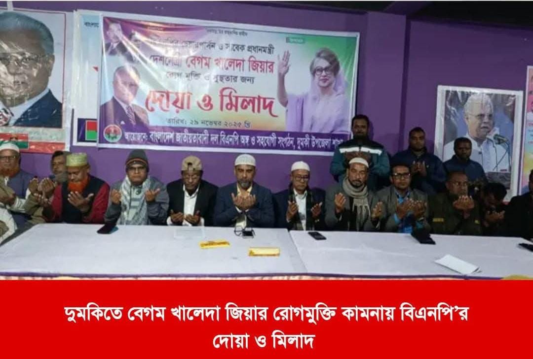 At that time, a large number of party leaders, workers and supporters of Patuakhali district BNP and Dumki upazila were present. Special prayers were offered for long life and speedy recovery of Begum Khaleda Zia.