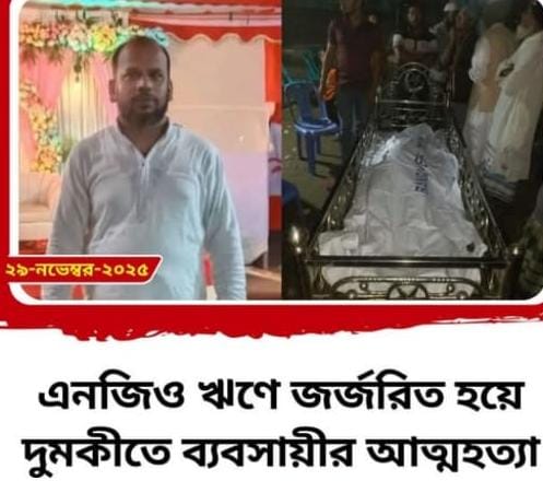 Ilyas Hossain Khan (45), a tea shopkeeper of Pirtala Bazar in Dumki Upazila, burdened with NGO debts, committed suicide by wrapping a veil around his neck and hanging himself with a fan. This suicide incident took place at the house of Latif Khan of Jhatara village of Angaria Union in Dumki Upazila of Patuakhali district on Saturday at 4 pm. Sources said husband/wife named Jihad Store in Dumki's Pirtala BazarHe was running a business. As usual, when wife Taslima goes to the shop, husband Elias goes home to have lunch. After eating, he closed the door of the room, wrapped the veil around his neck and committed suicide by hanging himself from the fan. Later, when the people in the neighborhood informed the police, the Dumki police station recovered the body. Wife Taslima Begum said that there were at least 15 to 20 installments of the NGO, every day of the week except Friday.Two or three NGOs were worried about installments. And was mentally broken. Besides, I do not see any other reason. Dumki Police Station OC Investigation Md. Rafiqul Islam said that the police were sent after receiving the information. the law