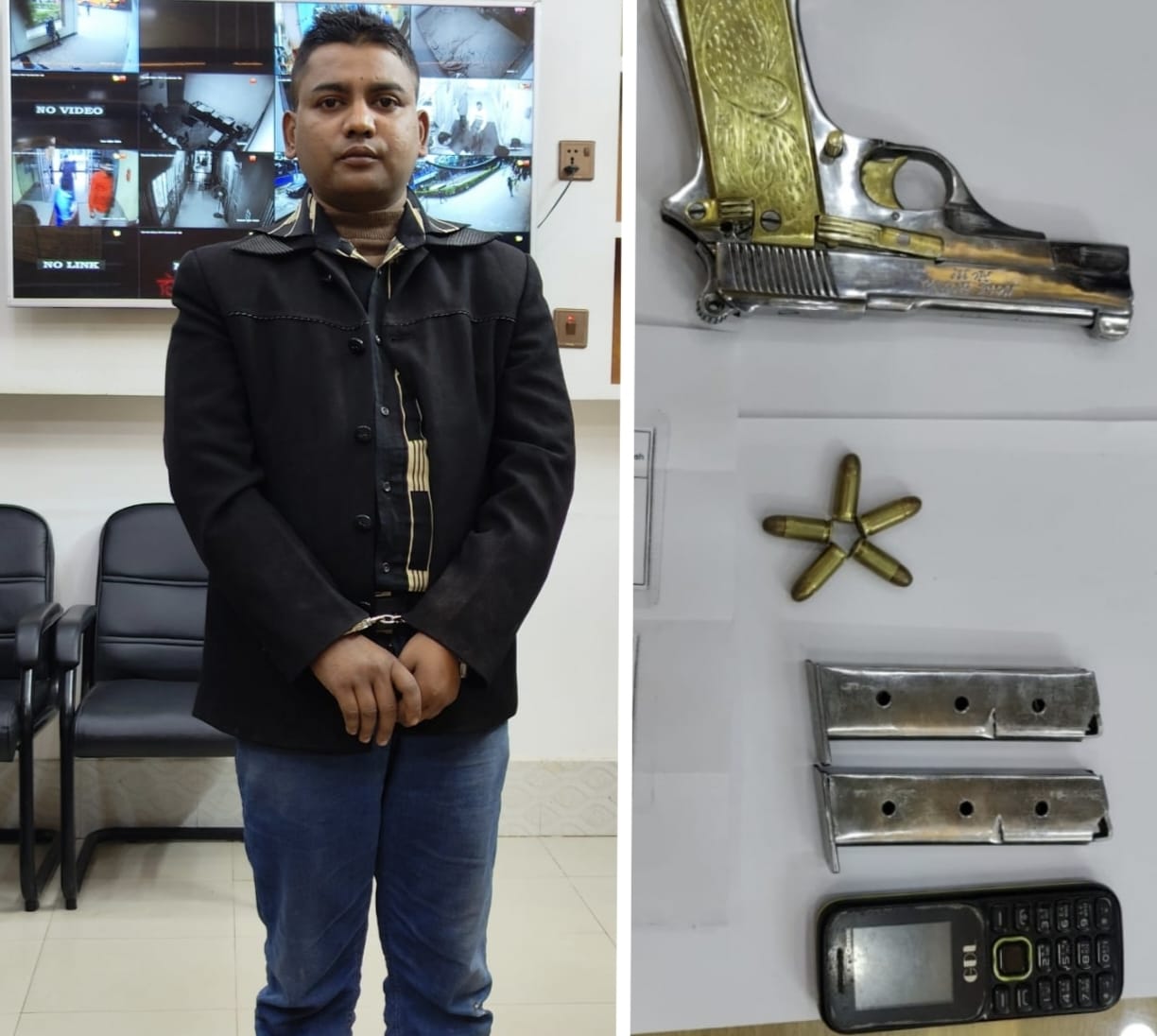 A young man named Royal Hasan Aranya (35) was arrested by the police in Chapainawabganj along with an American made pistol and bullets. He was arrested at the toll plaza of Mahananda Setu in Rehaichar area of Chapainawabganj municipality at 4:30 pm on Monday, December 1. Chapainawabganj Additional Superintendent of Police NM Wasim Feroze confirmed this information. Royal Hasan Aranya is the son of deceased Al Mamun of Parchoka Madrasa Bazar in Manaksha Union of Shivganj. Additional Superintendent of Police NM Wasim Feroze said, based on secret information, a police team set up a check post at the toll plaza and searched the vehicles. At that time, Royal Hassan Aranya was arrested with a pistol, 5 rounds of bullets and two magazines from a CNG-powered auto-rickshaw. Aranya was coming from Shibganj to Chapainawabganj city.