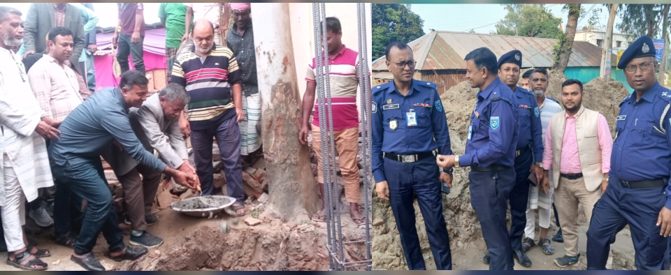 The foundation stone of a new three-storied building has been laid at Jame Masjid, Saghata Thana Headquarters, Gaibandha. The construction work was officially inaugurated by the initiative of Monir Hossain, Officers-in-Charge (OC) of Saghata police station after Zohar prayers on Thursday.