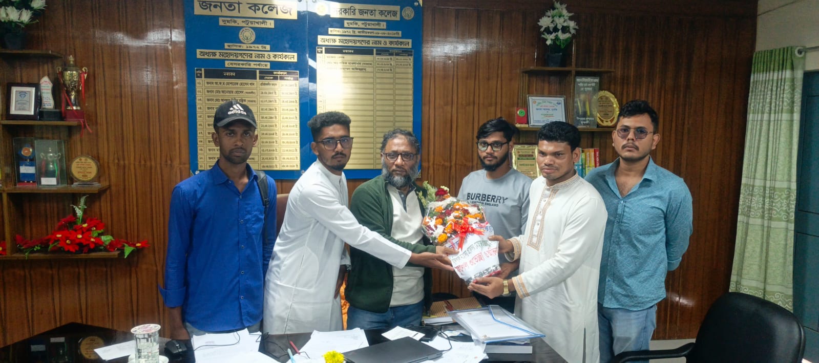 Khalid Hasan, Baijid Shubo, Zobair Hossain Abdullah, Rakib Khan, the members paid a courtesy call to the college principal Professor Azimullah and other teachers. The leaders exchanged views on the management of educational institutions, environmental development and organizational issues. The teachers said that they gave floral greetings during the meeting.