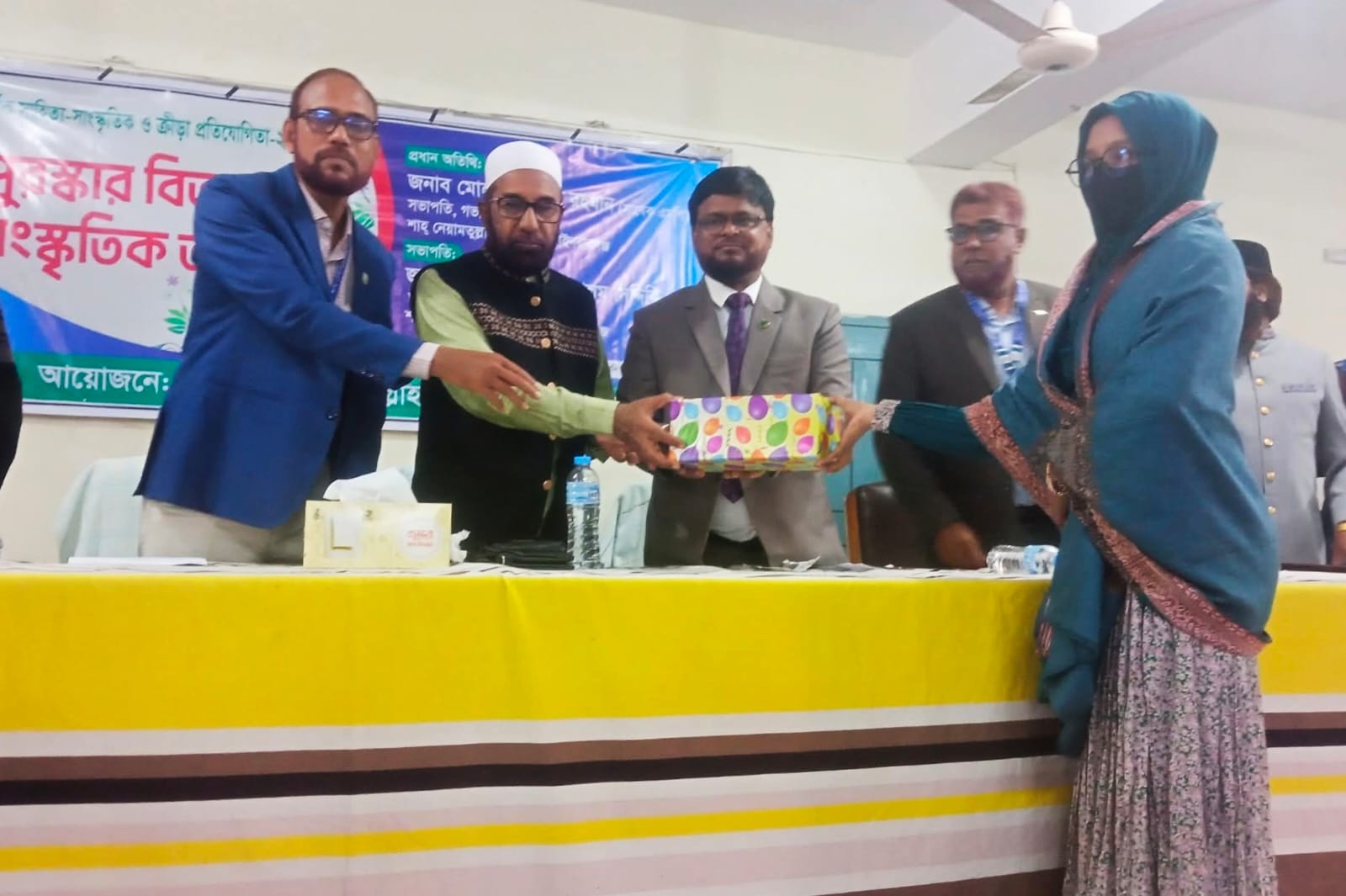 The prestigious Shah Niamatullah College in Chapainawabganj organized the prize distribution ceremony of the Annual Literary and Cultural Competition-2025 at Moni Ukil Memorial Auditorium on Wednesday (December 10) at 10:30 am. Md. Tariqul Alam Siddiqui, Principal of Shah Niamatullah College presided over the event. General Secretary of Staff Council and Assistant Professor of Finance Mahfuzul Hasan Don delivered the welcome speech. Md. Latifur Rahman, former MP of Chapainawabganj-3 Constituency and president of governing body of Shah Niamatullah College was the chief guest in the event. There were other guests on the occasion, Md. Sharifur Islam, Vice-Principal of the college, former (acting) Principal Md. Kamruzzaman, Md. Habibur Rahman, Convener of Sports Committee and Assistant Professor of Chemistry Department, English and Teacher Representative Lecturer Nawsabah Naureen, Islamic Education and Teacher Representative Lecturer Md. Farhat Hossain and Marketing and Teacher Representative Md. Abdullah and others. 42 students out of 14 subjects have won the annual literary and cultural competition on the said occasion. 39 students won out of 13 sports that participated in the sports competition. Teacher -Teachers won 36 out of 12 subjects in Literary and Cultural and Sports competitions and employees of the college won 9 out of 3 sports competitions. Prizes were awarded to each winner by the chief guest and the guests. After the distribution of the prizes, the teachers and students along with the guests enjoyed a cultural program.
