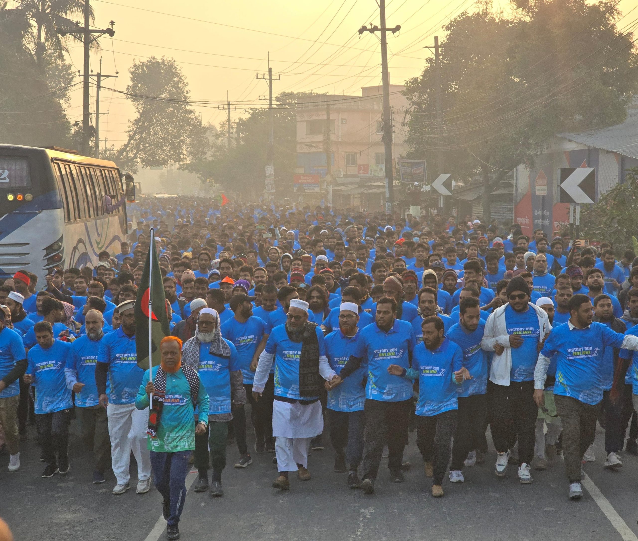 On the occasion of Great Victory Day in Chapainawabganj on Friday in the month of victory Chapainawabganj Development Forum hosted the marathon running competition at Dwariapur truck terminal of the city and member of Bangladesh Jamaat-e-Islami Central Executive Council and Amir of Dhaka Metropolitan South and Jamaat-nominated parliamentary candidate for Chapainawabganj-3 Constituency Md. Nurul Islam Bulbul inaugurated the marathon race. Victory Month Victory Run is organized. In this month on December 16, beloved Bangladesh won the victory. After 53 years of holding hands in this month of victory, we got a new Bangladesh under the leadership of our youth, youth and students. The dream of new Bangladesh is to want Bangladesh without justice and discrimination. The spirit of the uprising was to establish a new Bangladesh free from corruption, terrorism and extortion. We will build our beloved Chapainawabganj under the leadership of youth, youth and student society, Inshallah. He also said, we want good governance, peace, sustainable development. In the month of victory, we are going to make the dream of establishing a new Bangladesh through change in the coming days, this journey is irresistible. This journey will continue. Thousands of youths, students participated in this competition. Later, at 8 am, the race started from Daryapur truck stand and ended at Devinagar Bimukhi High School ground. The race of about 32 kms got a huge response from the people of the area. Prize distribution ceremony was held after the competition. Bangladesh Jamaat-e-Islami central working council member and former mayor of Chapainawabganj municipality Mohammad Nazrul Islam, Central Majlis Sura member and former MP Professor Moh Latifur Rahman, District Jamaat Amir Maulana Abuzar Giffari, Deputy Amir Professor Md Mokhlesur Rahman, Secretary Abu Bakar, Assistant Secretary Professor Abul Hasan, Municipal Amir Hafez Golam Rabbani, Sadar Upazila Amir Hafez Abdul Alim, Municipal Naib Amir Advocate Shafi Enayetullah,Member Secretary of Implementation Committee Advocate Noore Alam Siddiqui Asad and others.