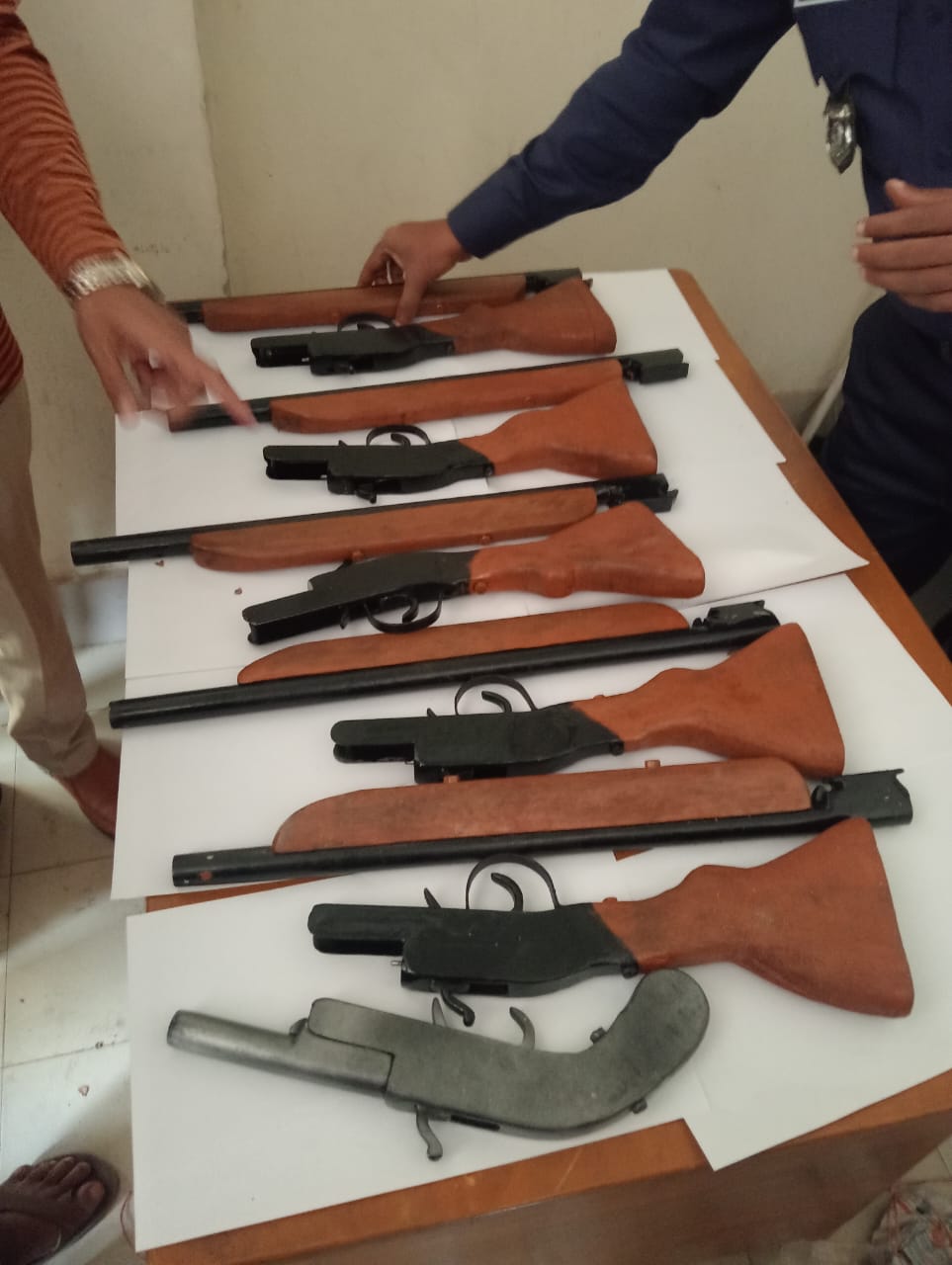 Police recovered 6 single-barreled guns and a pipe gun from a graveyard in Begumganj, Noakhali.