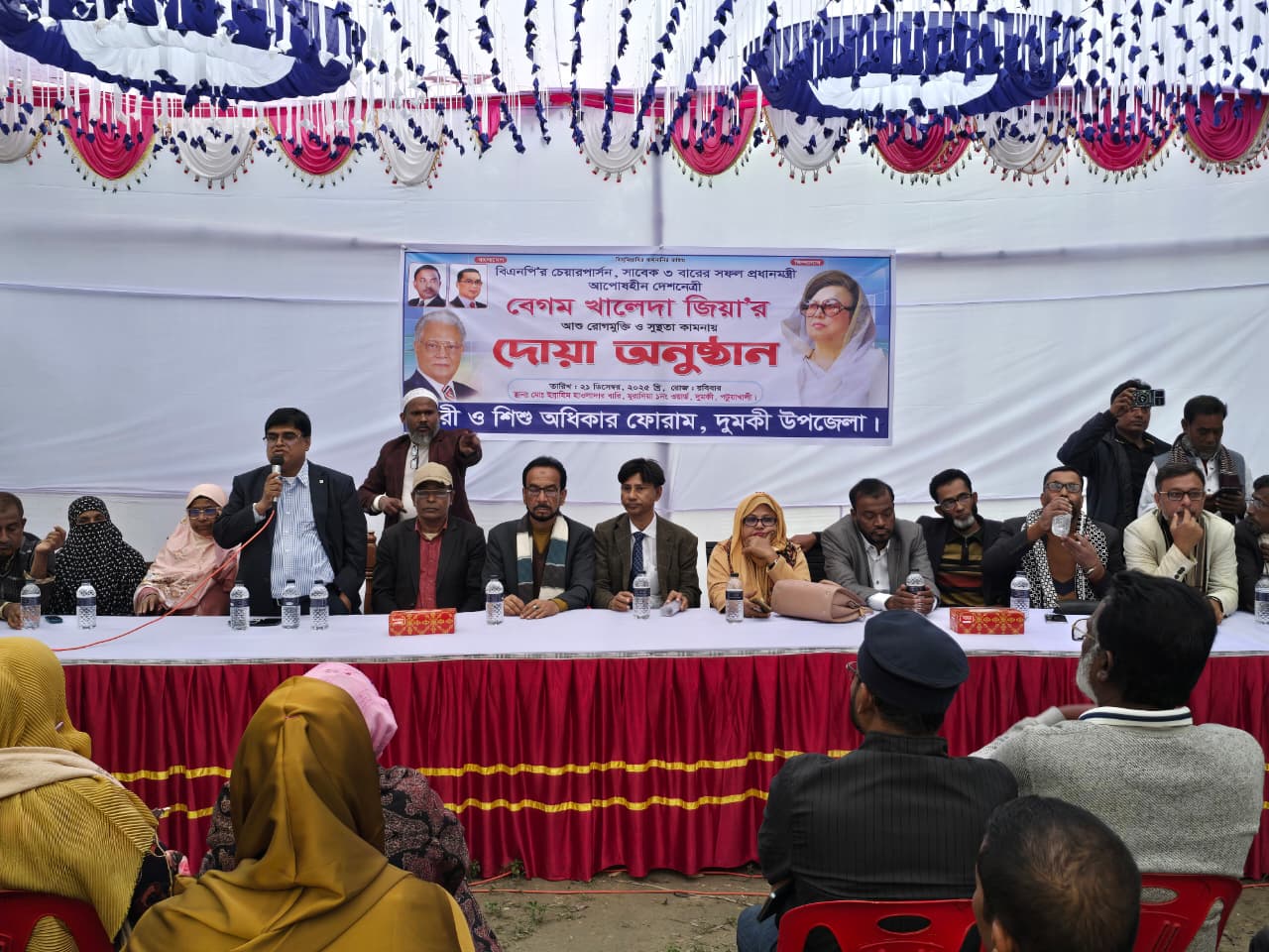 In Dumki Upazila of Patuakhali district, a prayer ceremony was held for the speedy recovery and recovery of BNP chairperson, former prime minister and three-time successful prime minister Begum Khaleda Zia.