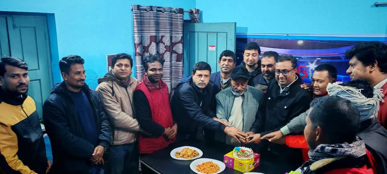 Colleagues celebrated journalist Vidush Roy's birthday by cutting a cake in a joyful atmosphere in the office room of Khabarbari 24.com organized by the media workers of Palashbari upazila at 8:30 on Thursday, January 15.