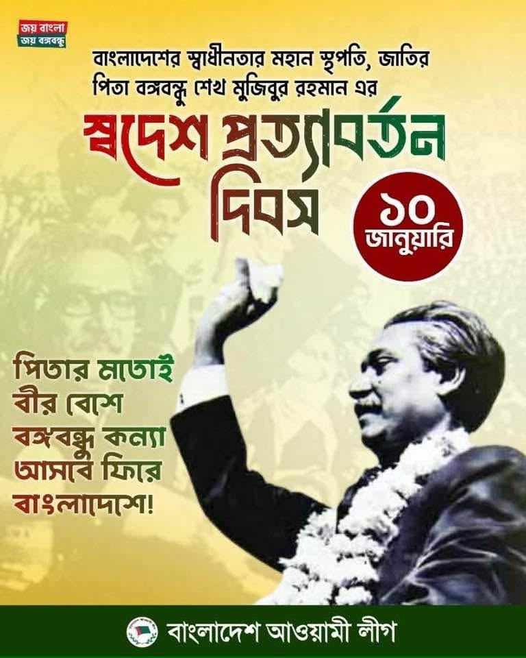 On the initiative of London Metropolitan Awami League, Sunday, January 18, 2026, at 5:30 p.m., Hessel St. London E-1, 2LR organized the 54th anniversary celebration of Father of the Nation Bangabandhu Sheikh Mujibur Rahman's Homecoming Day on January 10, 1972. A discussion meeting has been organized in it. Various political, social, cultural, professionals, poets, journalists, writers, literary, educationalists, on the side of the liberation war.Acting President of London Metropolitan Awami League Anhar Mia and Acting General Secretary Afsar Khan Sadek extended greetings to all expatriates including columnists.