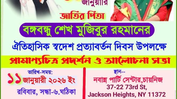 Sheikh Hasina Sangam Parishad United States will celebrate Bangabandhu’s 54th Homecoming Day on Sunday evening Hakikul Islam Khokan The Sheikh Hasina Sangam Parishad has organized a program to celebrate the ...বিস্তারিত পড়ুন