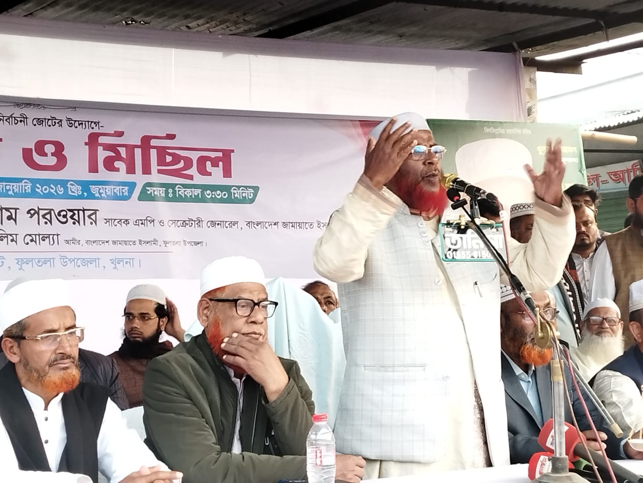 In the upcoming Thirteenth National Assembly Elections, a huge procession, public meeting and public meeting was held at Fultala Bazar bus stand square on 23/01/2026 at 3:30 pm in support of the election symbol of Professor Mia Golam Parayar, the candidate of ten party alliance in Khulna 5 constituency. Professor Mia Golam Parayar (Secretary General,Bangladesh Jamaat-e-Islami). Besides, all the leaders and activists of Khulna district and Fultala upazila level. People from all walks of life participate voluntarily in public meetings.