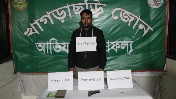 Terrorists arrested with illegal weapons in army operation in Khagrachari A terrorist was arrested along with illegal arms and ammunition during an army operation in the agricultural research area of