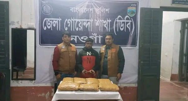 Naogaon arrested one with 7 kg ganja At the beginning of the year, 01 drug dealer was arrested with 07 kg of ganja in the anti-drug operation On 31-12-2025 District