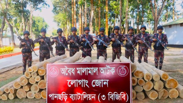 Illegal teak wood seized at Panchari in Khagrachari Border Guard Bangladesh (3 BGB) has seized a huge quantity of illegally smuggled teak wood in Karallachari area of Panchari upazila of