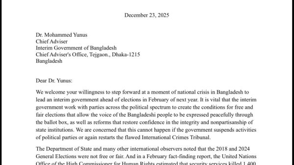 The letter of five congressmen urging the election with Awami League. Yunus Hakikul Islam Khokan In the letter written by five US Congressmen to the Chief Adviser, several political parties