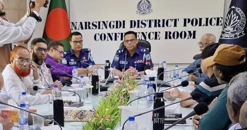 নরসিংদীতে পুলিশ এর টহল বাড়ানো হয়েছে মোঃ মেনহাজুল আলম পুলিশ সুপার। মোঃ কামাল হোসেন প্রধান জেলা প্রতিনিধি নরসিংদীতে পুলিশ সুপার এর সম্মেলন কক্ষে মতবিনিময় সভায় পুলিশ সুপার মোঃ মেনহাজুল আলম