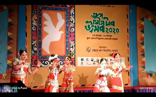 Drama “Fire” Staged at Group Theater Festival: Kalo Avvangarde’s Drama “Fire” Oishi On the 6th day of the 12-day group theater festival organized by the Chittagong Group Theater Forum at